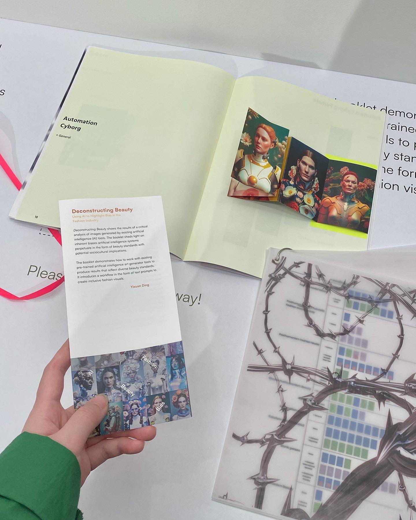This artifact shows the results of a critical analysis of images generated by existing artificial intelligence (AI) tools. The booklet shows further shed light on the inherent bias in artificial intelligence systems that manifest in the form of beauty standards with potential sociocultural implications.